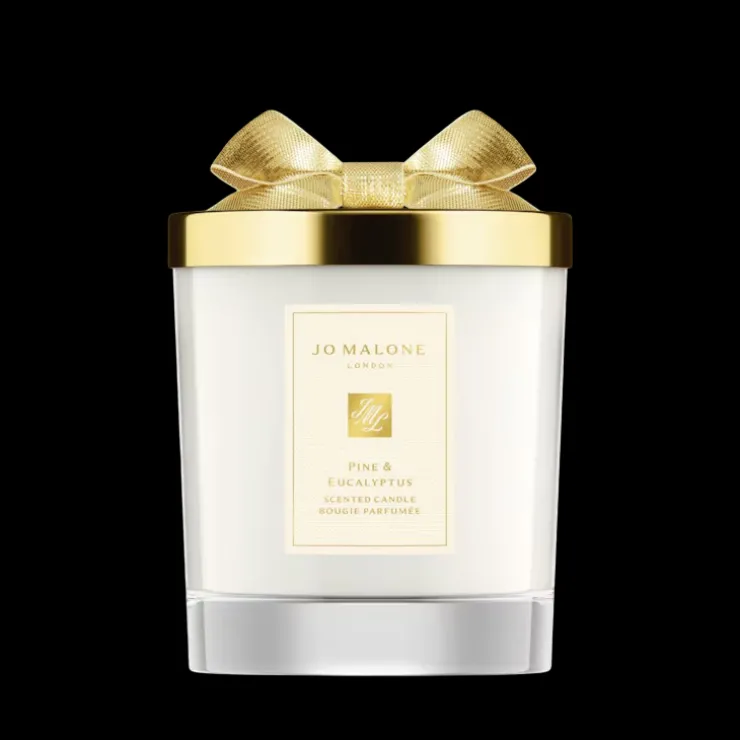 Jo Malone London Pino & Eucalipto Candela accende le mattine di Natale con un profumo luminoso e rinvigorente: la festosità aromatica del pino incontra la freschezza balsamica dell’eucalipto. Realizzata nelle campagne inglesi in uno speciale design natalizio in vetro.