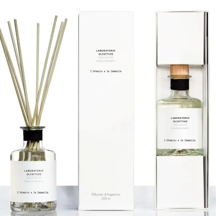 Laboratorio Olfattivo ambiente è una collezione di diffusori ambiente nata dalla passione per il mondo della profumeria dalla volontà di creare atmosfere raffinate e per continuare l’opera cominciata con le eau de parfum.Si tratta di diffusori in formato da 200 ml della durata di 2-3 mesi che uniranno il risultato di profumare gli ambienti con l’eleganza della presentazione.Note: Arancio Cannella Muschio bianco
