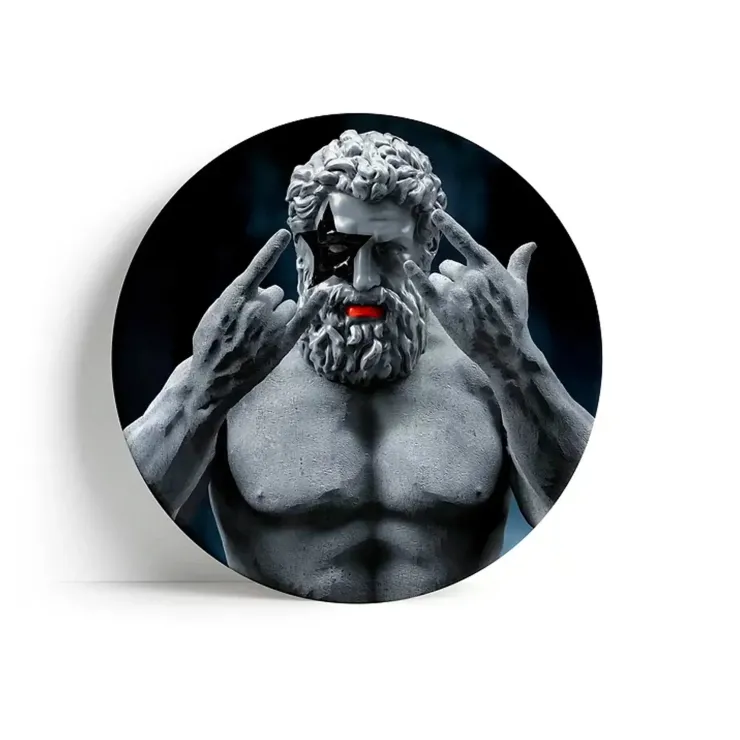 Design audace e potente con il dio greco, Ercole con un labbro rosso sfacciato.